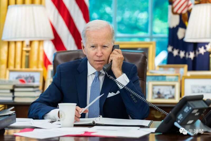 但这次,看白宫发布的拜登现场照片,他身穿西服,左手拿着电话,右手好像还拿着一支笔,前面摆放着一些文件。