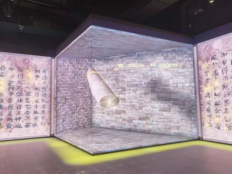 杭州国家版本馆数字馆是一个版本数字展厅,以数字版本+沉浸多媒体空间的形式展现中华版本内涵,提炼展示中华优秀传统文化精神标识的当代价值。展厅通过“裸眼3D+沉浸式光影”方式,虚拟化玉琮王、五代雷峰塔经卷、元龙泉窑青瓷舟形砚滴、龙井茶证明商标、共产党宣言等浙江特色版本珍品。