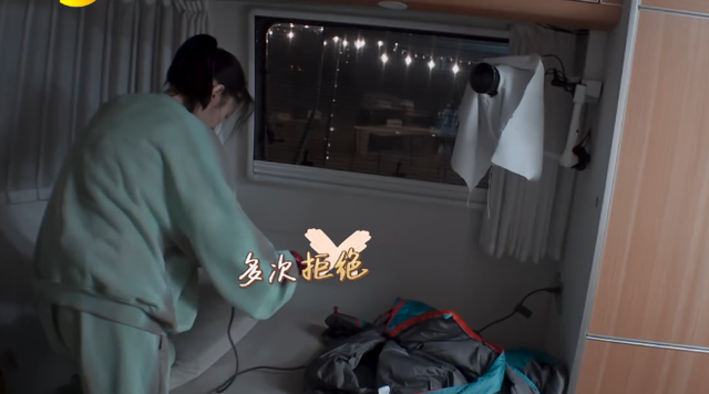 比如海边露营,房车内潮湿带来不适感,刘敏涛不想麻烦大家,自己拿着吹风机,想办法烘干被子。但是,房车内的电压不稳定,吹风机根本不管用。刘敏涛抱怨说:“让我很焦虑,本来就睡不好,如果再这样下去,我要‘疯’。”