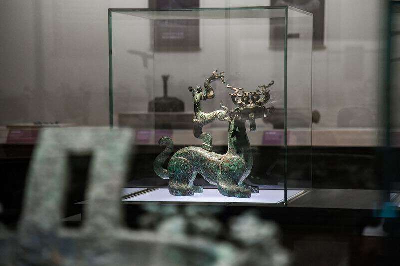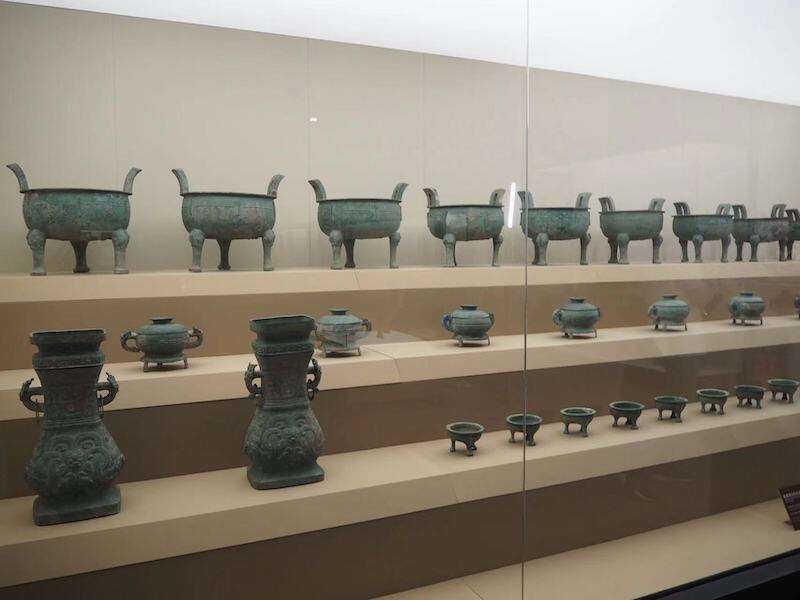 展览现场,新郑郑国祭祀遗址出土青铜器(春秋中期)