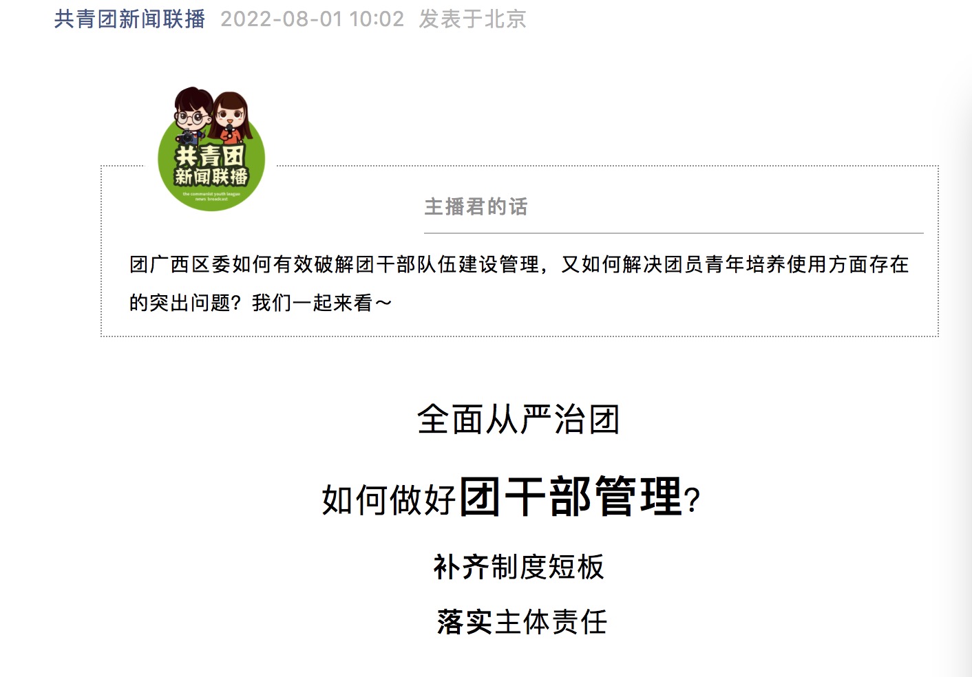 共青团新闻联播 | 2022-08-01