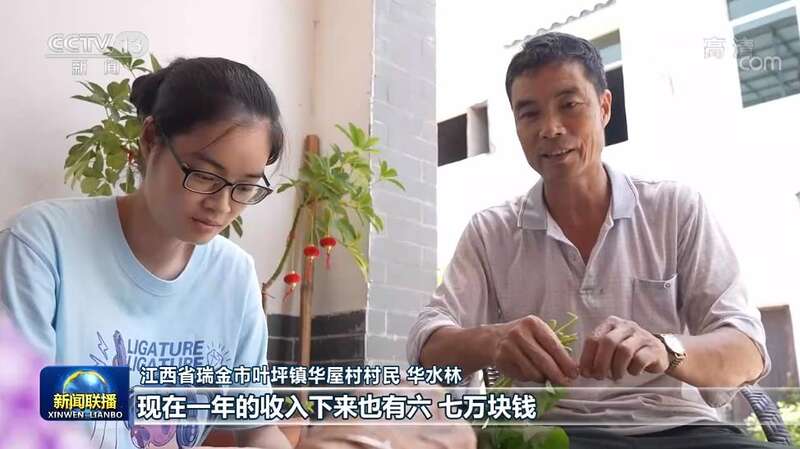 江西省瑞金市叶坪镇华屋村村民 华水林:以前我们住土坯房,现在住上了小洋楼,以前我们口袋都是空空的,现在一年的收入有六七万块钱,做梦都没想到现在的日子会过得这么好。