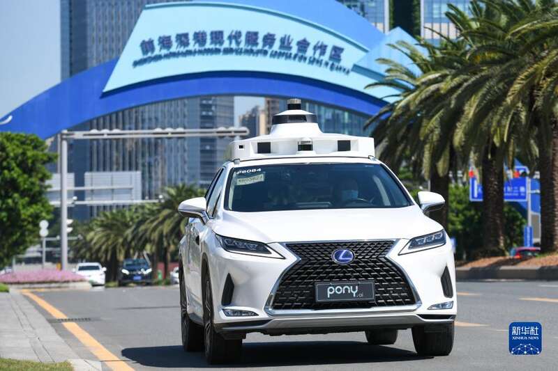 8月1日,在深圳前海,小马智行自动驾驶汽车在道路上行驶。