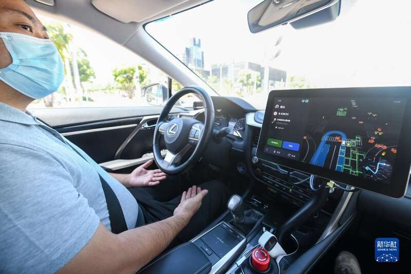 8月1日,在深圳前海,一名乘客体验乘坐小马智行自动驾驶汽车。