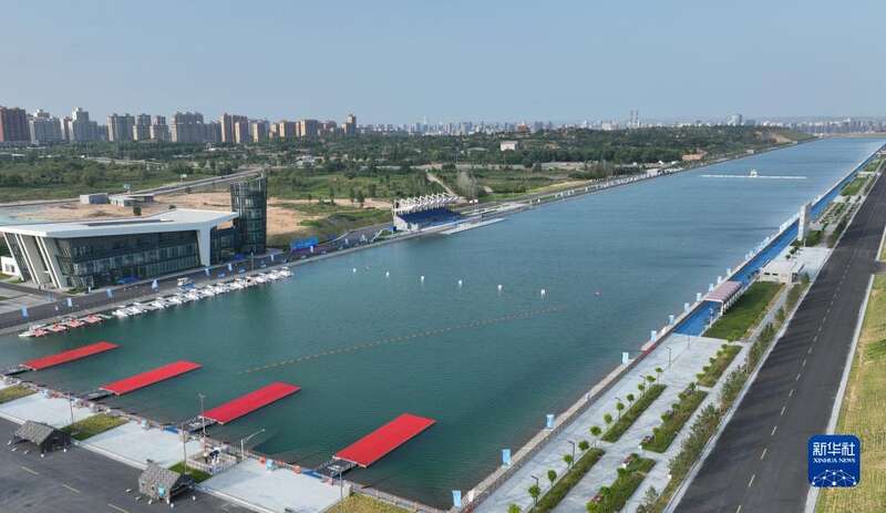榆林市水上运动公园(7月31日摄,无人机照片)。榆横矿区煤矿疏干水项目为榆林市水上公园供水。 新华社记者 陶明 摄