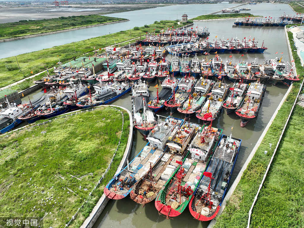 2022年8月1日,江苏南通,渔船驶出启东吕四渔港,出海作业。