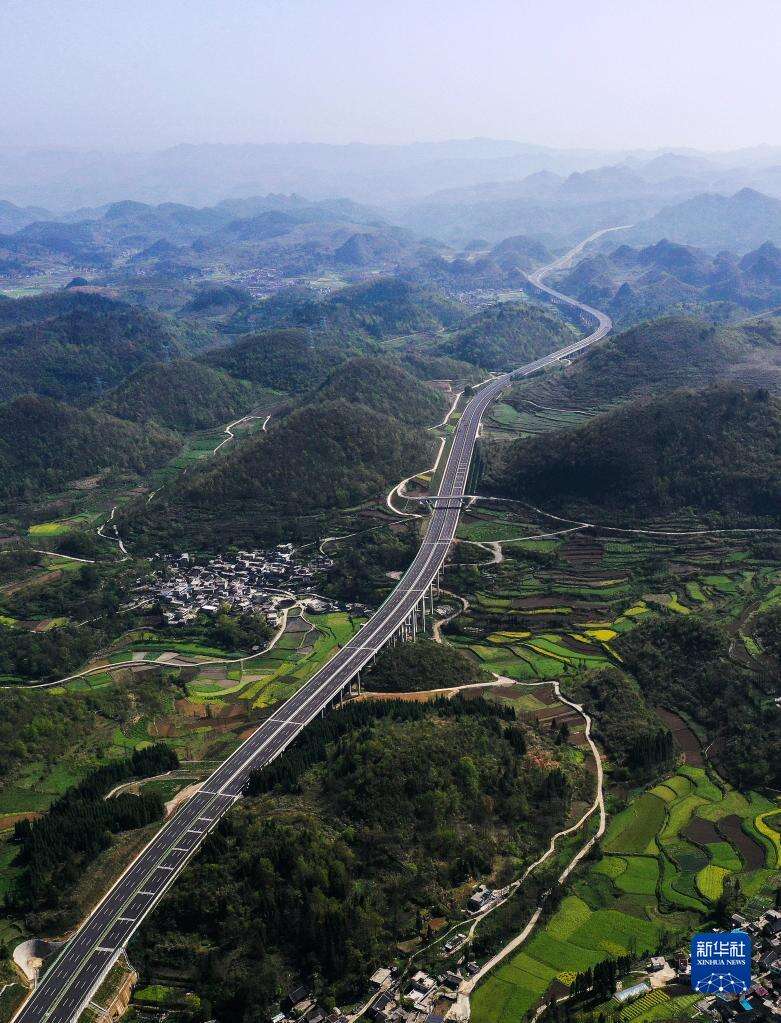 这是贵黄高速公路贵定县境内路段(2022年3月28日摄,无人机照片)。新华社记者 杨文斌 摄
