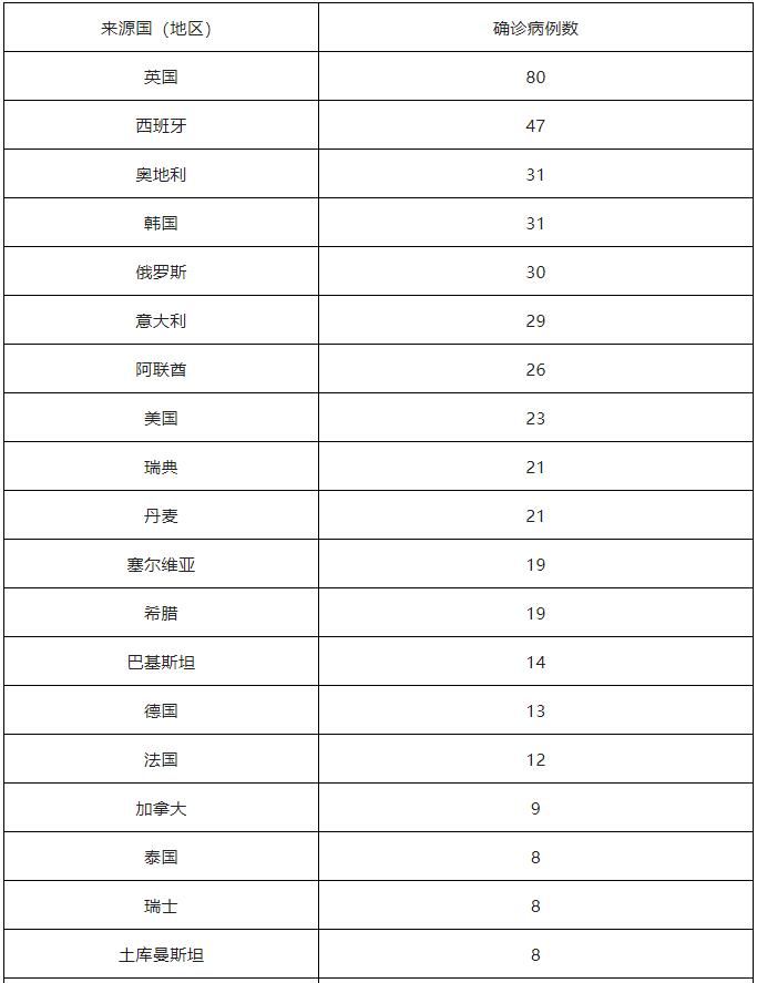 境外输入确诊病例来源国(地区)情况