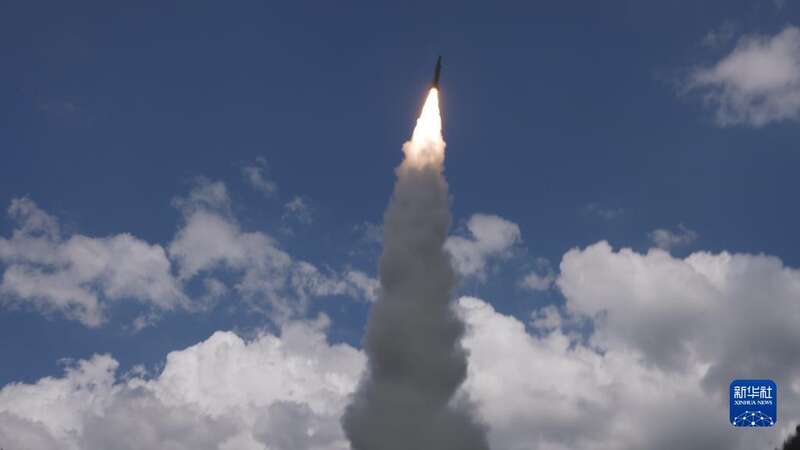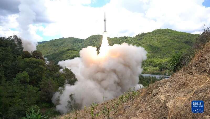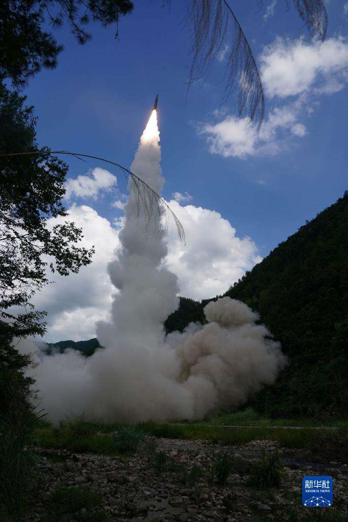 8月4日,东部战区火箭军对台岛东部外海预定海域实施火力突击。这是导弹升空。