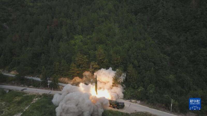 8月4日,东部战区火箭军对台岛东部外海预定海域实施火力突击。这是导弹点火发射。