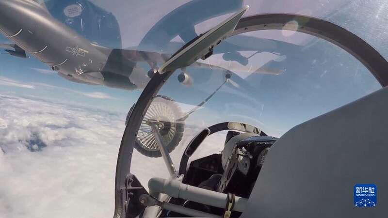 8月4日,东部战区空军航空兵某旅同时出动多架战机,飞赴台岛周边海域执行任务,进一步检验部队实战能力。这是战机进行空中加油(视频截图)。