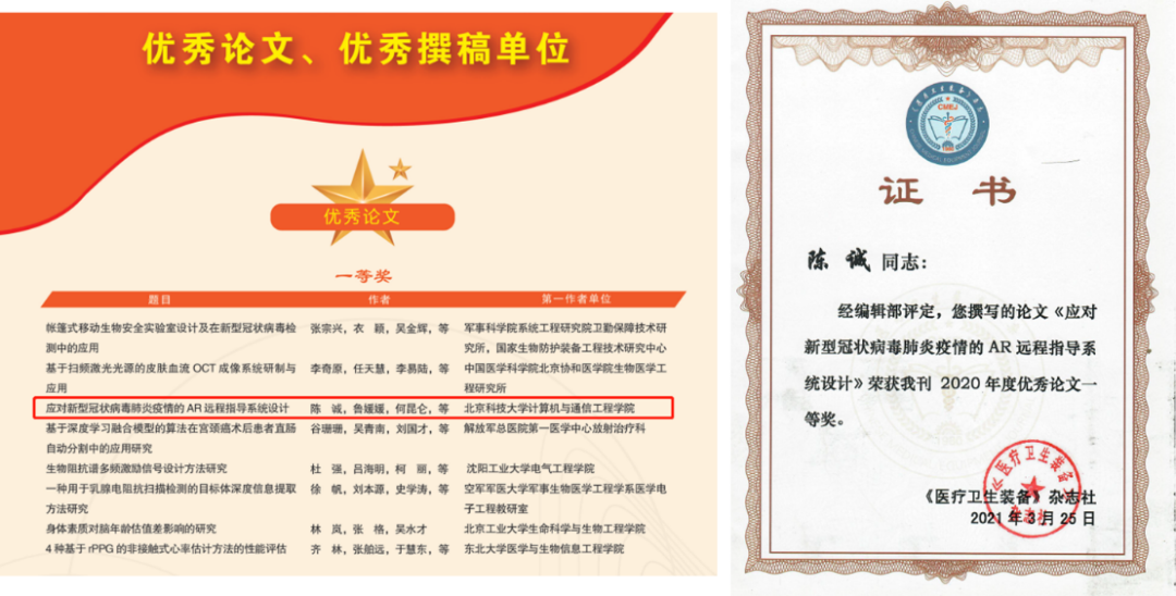 在瀚影的支持下,陈诚专心科研,现以第一作者身份发表SCI检索论文8篇(共41.928影响因子),申报国家发明专利6项,以学生身份担任《Computers in Biology and Medicine》、《Physics in Medicine and Biology》、《Scientific Reports》等领域高水平SCI期刊审稿人。所在团队与中国人民解放军总医院、中日友好医院、北京积水潭医院等医院骨科、胸外科、耳鼻喉科、神经外科、介入医学科等多个科室有着长期紧密的合作,主要涉及多模态医学影像中重要组织的重建及分析,已经在医院广泛试点,为其提供了上千例的手术分析支持,有着丰富的医工交叉项目经验。基于数字医疗技术组建“万众医芯”团队,相关转化技术获得了第七届中国国际“互联网+”大学生创新创业大赛国赛银奖,实现计通学院在该项目上的国赛零突破。团队相关事迹受中央电视台《焦点访谈》节目组采访。