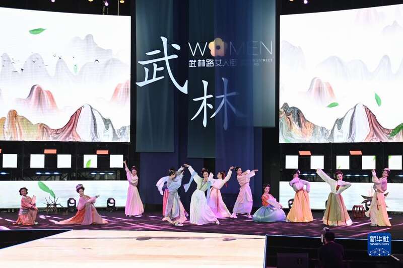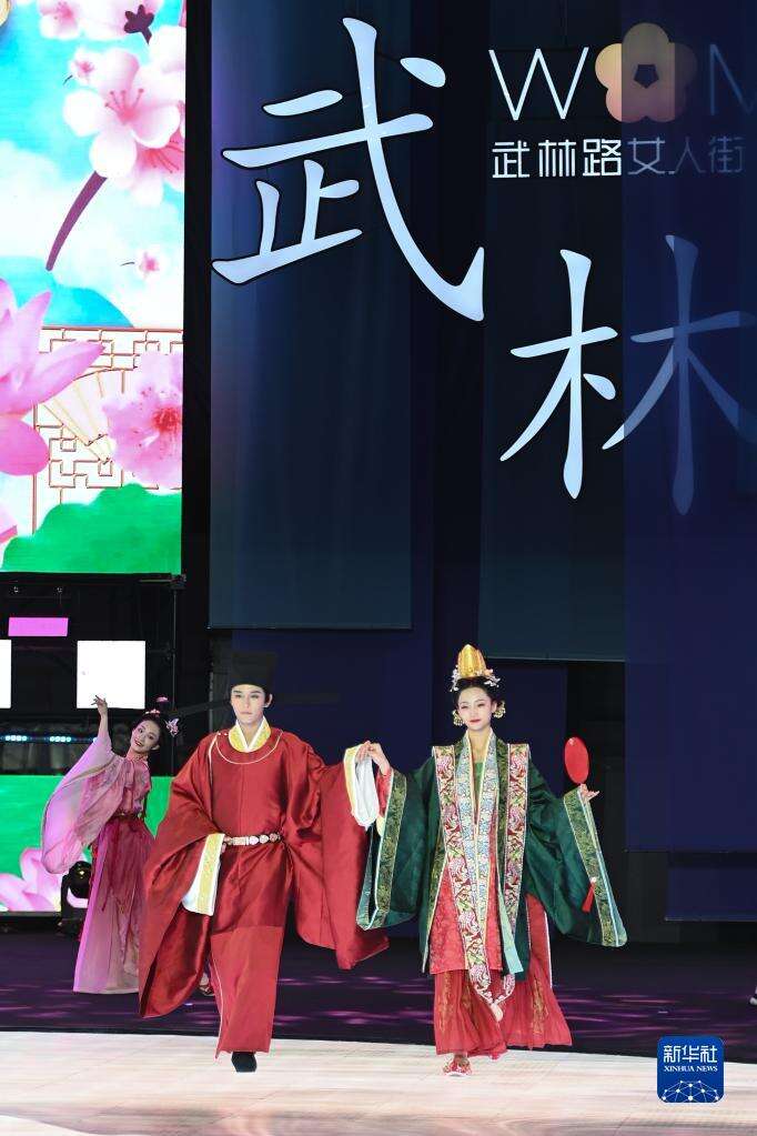 当日,2022杭州仲夏夜——拱墅区“武林衣秀·宋韵杭州”暨武林路女人街开街仪式在武林广场上演。活动除了走秀,还融入了宋韵元素,呈现宋代风韵。