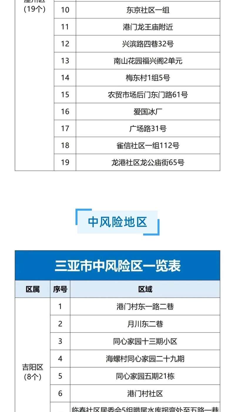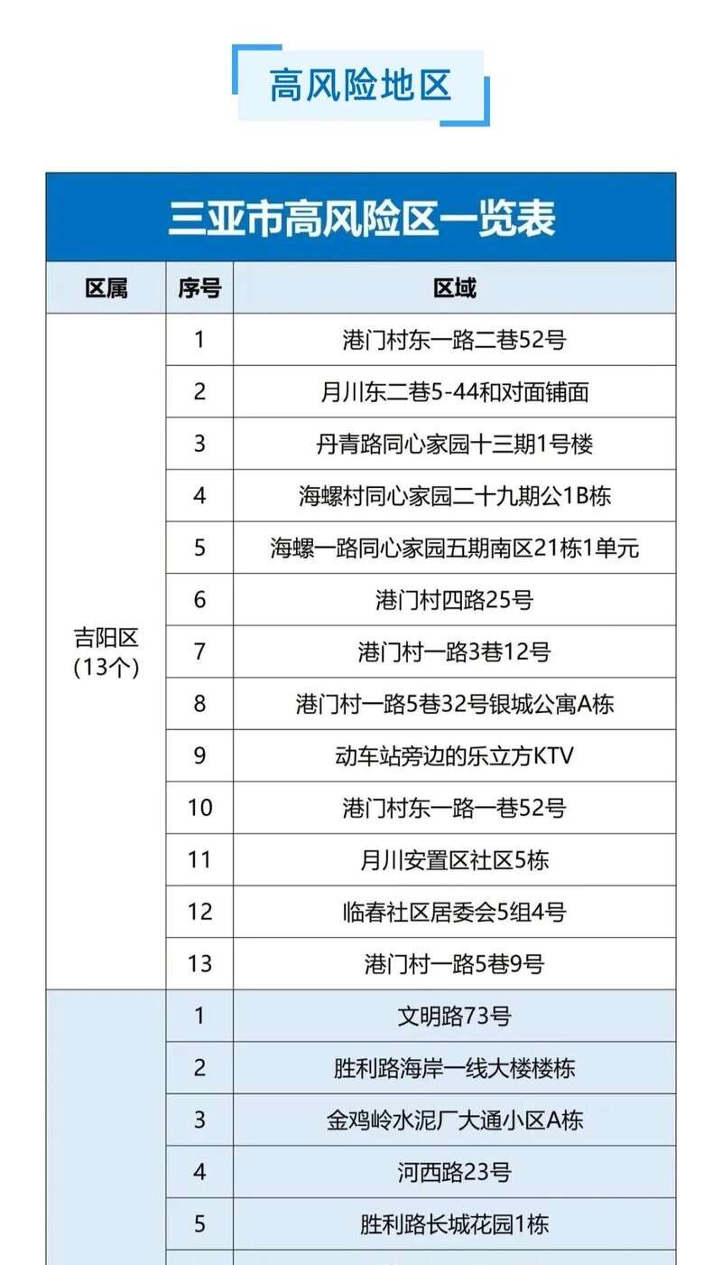记者从三亚市新型冠状病毒肺炎疫情防控工作指挥部了解到,根据当前三亚市疫情防控工作需要,按照国务院应对新型冠状病毒肺炎疫情联防联控机制综合组《新型冠状病毒肺炎防控方案(第九版)》相关规定,经专家组研判,市疫情防控指挥部决定,自2022年8月5日起,高风险区域调整为52个、中风险区域调整为33个。