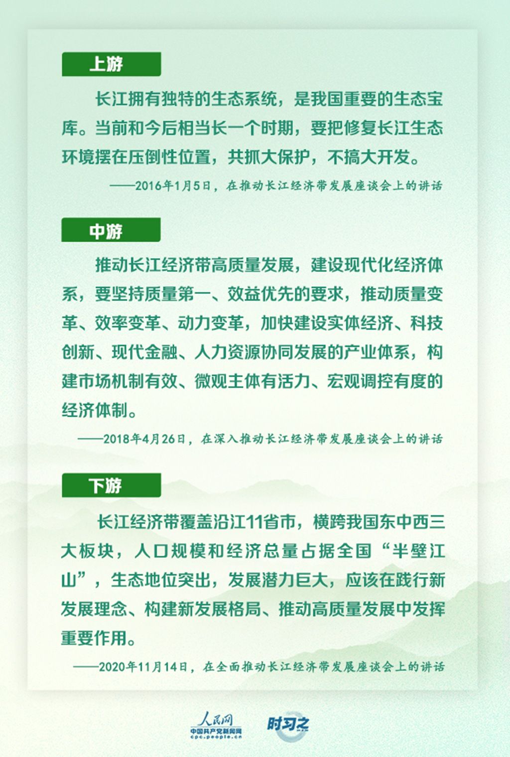 2016年以来,习近平总书记前往长江上、中、下游调研,3次主持召开专题座谈会。从“推动”到“深入推动”再到“全面推动”,深刻阐释长江经济带“共抓大保护、不搞大开发”的战略考量,为“江河战略”发展的大棋局落下关键一子。