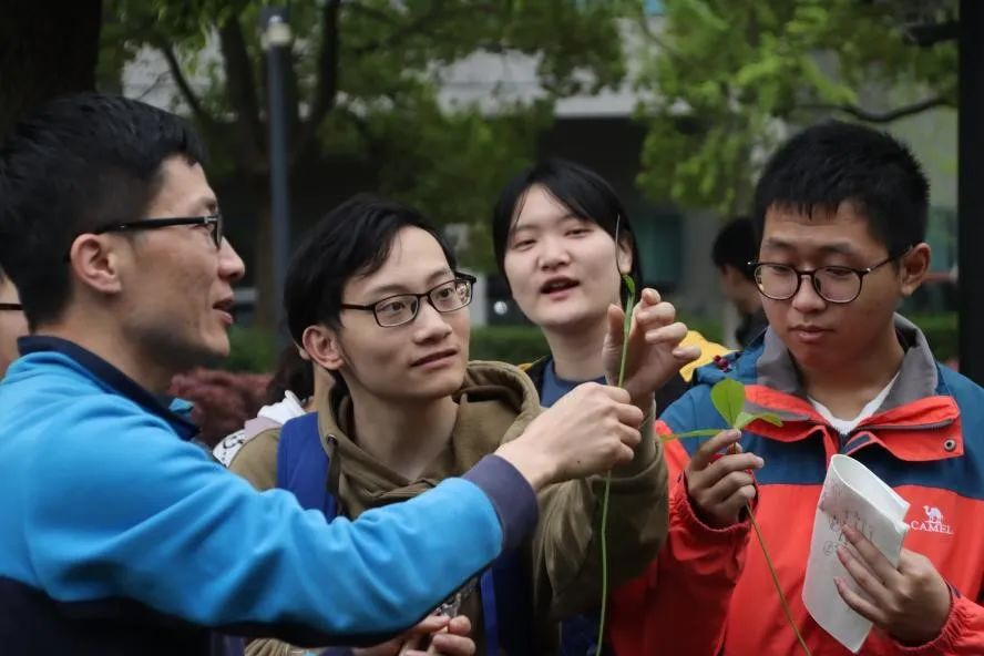 社团指导老师赵云鹏教授带领同学们探索校园植物