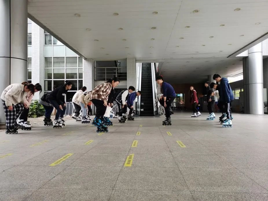 担任“教练”的同学是一群热爱轮滑的社团成员。朋辈间的传授,也是教学相长的过程。每到教练与学员比拼的环节,课程的气氛便异常热烈。