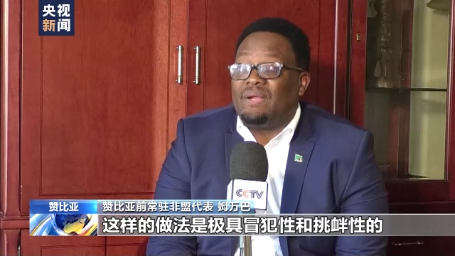 赞比亚前常驻非盟代表姆万巴:尽管受到各界强烈反对和严正抗议,美国众议院议长佩洛西仍执意这么做,这样的做法是极具冒犯性和挑衅性的。世界各国广泛支持一个中国原则。佩洛西的行为是草率的、危险的,也是具有挑衅性的。(总台记者 马培敏)
