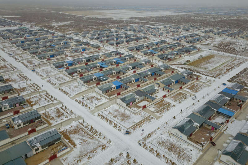 这是甘肃省武威市古浪县黄花滩生态移民区富民新村(无人机照片,2020年1月15日摄)。新华社记者 马希平 摄