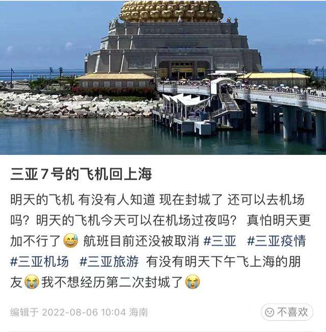 8月6日凌晨3:52,“三亚发布”发出通知:自2022年8月6日凌晨6时起,全市实行临时性全域静态管理,除保障社会基本运行服务、疫情防控和紧急特殊情况外,全市范围限制人员流动,暂停城市公共交通。恢复时间另行通告。