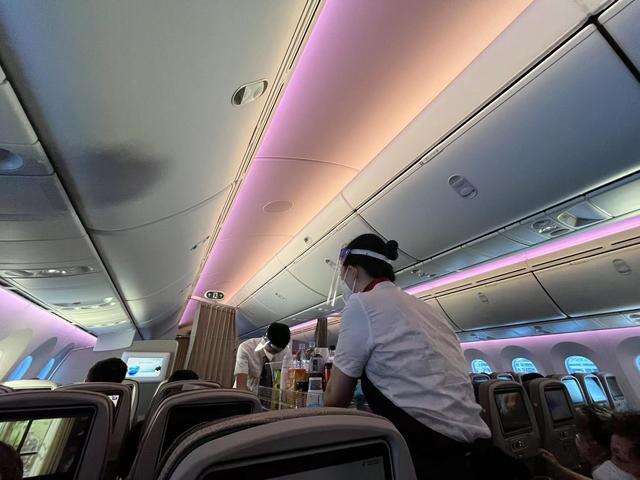 8月6日,蔡女士一家在飞机上等待两个多小时,最终被要求下飞机。图为机组人员发放午餐。 受访者供图