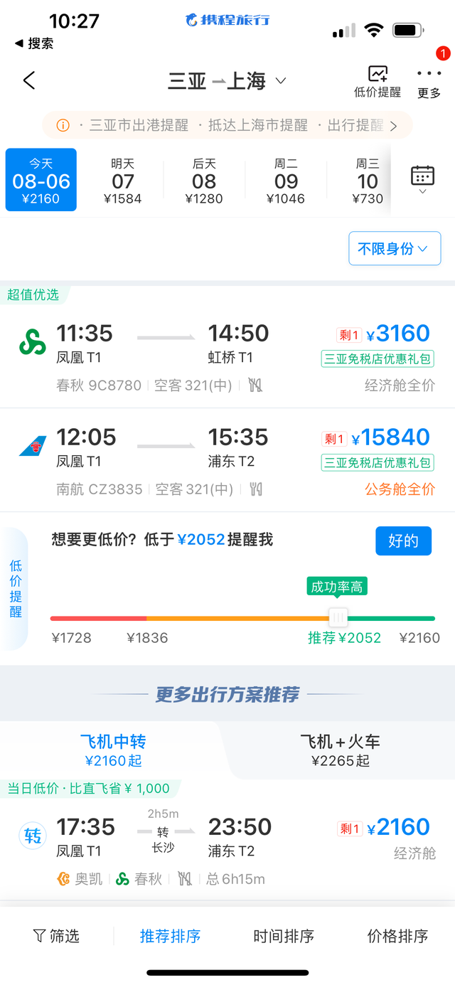 一时间,他觉得“心里都有点凉,又因为人在岛上,有种孤立无援的彷惶感”。他提到,机票的价格在不断上升,“之前看三亚回上海的机票,一般在1600元、1700元左右,昨天(8月5日)等我们订时,已是2486元了,晚一点再看,价格到了2800元左右,今天看到的价格就不谈了,更离谱。”