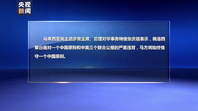 马来西亚民主进步党主席、总理对华事务特使张庆信表示,佩洛西窜台是对一个中国原则和中美三个联合公报的严重违背,马方将始终恪守一个中国原则。
