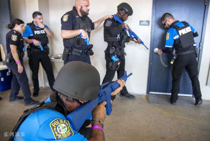哈伍德承认,有些人可能担心步枪出现在校园有风险,但他认为总体上更安全。发生在5月24日的得克萨斯州校园枪击案共导致21人丧生,当时400名执法人员赶到现场,却在一小时之后才击毙枪手。“我不想再跑回车里拿AR-15步枪和破门工具,那是浪费时间。” 哈伍德说。