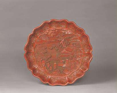 在雕漆工匠的手里,以漆层为纸、雕刀为笔,方寸之间营造出的场景之宏大,又岂止是突出单一的物体形象这么简单。图为故宫博物院所藏明永乐剔红山水人物葵花式盘,人物造型各异,动作精准,富有动感,增强了所雕画面的叙事性