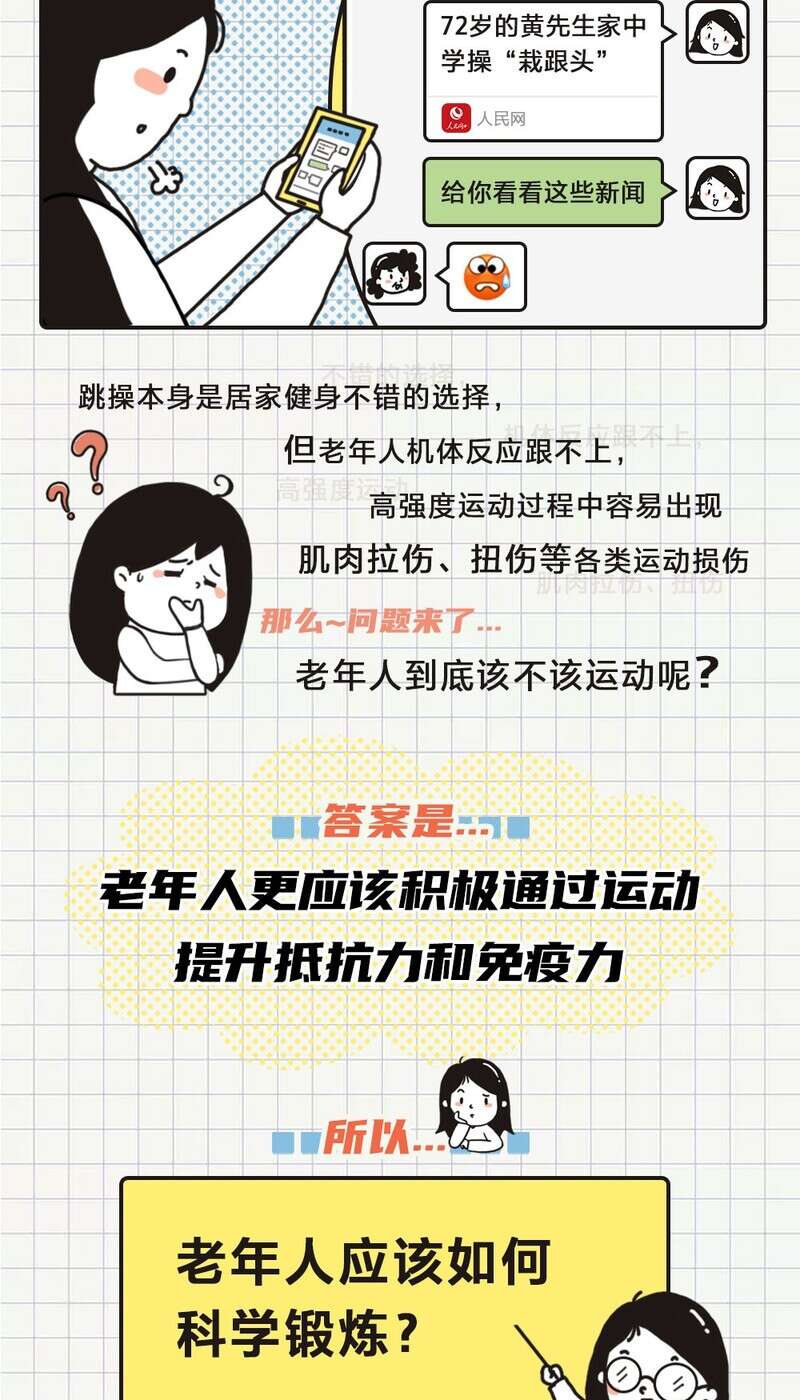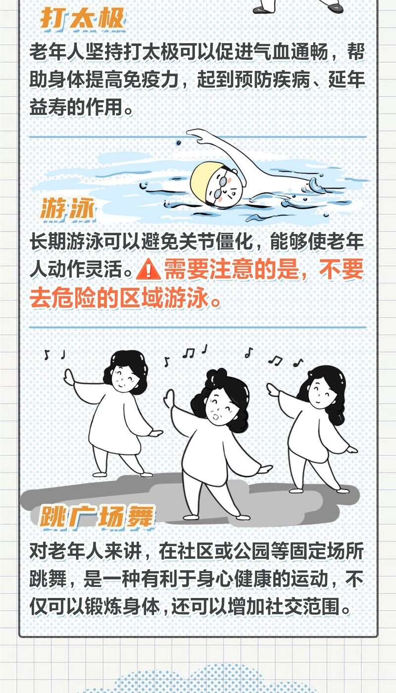 跳操是居家健身不错的选择,但老年人机体反应跟不上,高强度运动容易出现肌肉拉伤、扭伤等各类运动损伤。那么,老年人该如何科学运动?8月8日全民健身日,解锁老年人科学健身方法!