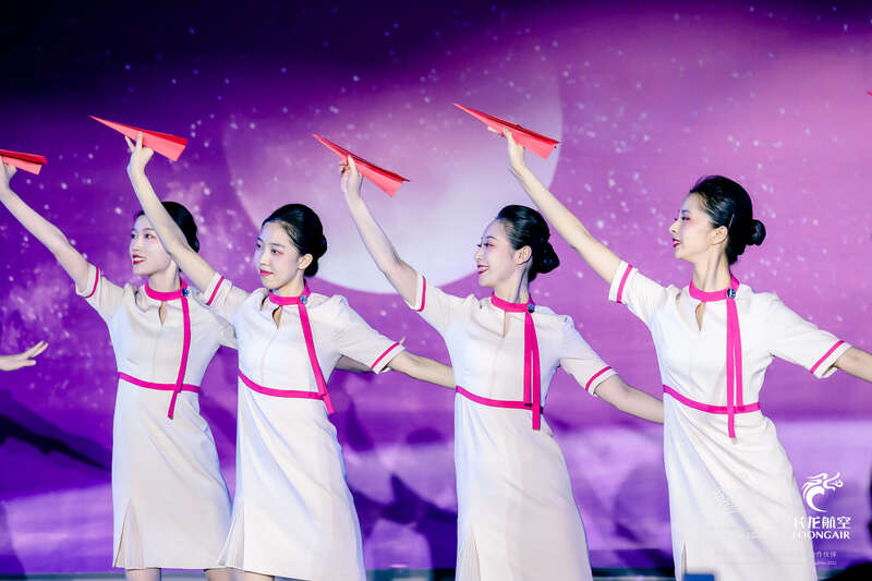 空姐们为亚运彩绘飞机准备的表演。杭州亚组委供图