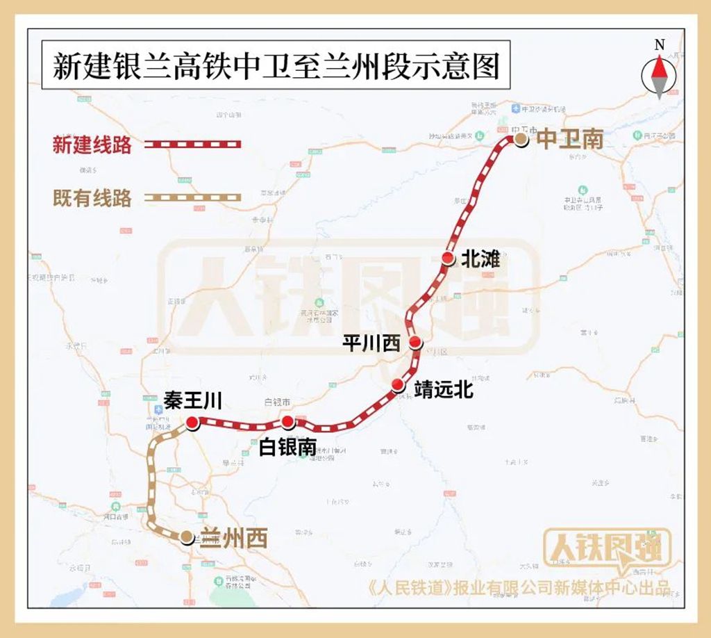 银兰高铁中兰段东自中卫南站引出,西经兰州新区接至兰州枢纽,设计时速250公里,全长约219公里,其中宁夏段约46.2公里,桥隧比约88%。