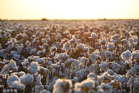 中国新疆维吾尔自治区石河子市棉花田 视觉中国资料图