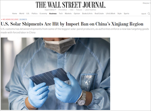 据《华尔街日报》当地时间8月9日独家报道,由于新疆地区生产的一种重要太阳能组件(多晶硅)占全球供应的近一半,随着美国实施法案以全面禁止涉疆产品,美国太阳能行业受到了新一波的严重破坏,且这一破坏程度仍然难以衡量。