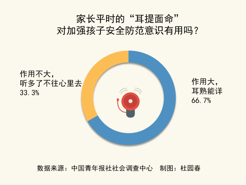 66.7%受访家长感到平时的“耳提面命”对加强孩子安全防范意识作用大