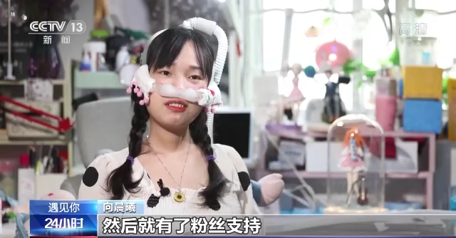 一身烂漫古风的衣裙,两条俏皮的辫子,可爱的女孩向晨曦是一名“90后”网络主播。每天,向晨曦都会准时出现在直播间里与粉丝互动,而与其他网络主播不同的是,她需要戴着呼吸管呼吸。因为在她年幼时,被诊断为“进行性肌营养不良症”,肌肉会逐渐萎缩,行动能力也将慢慢消失,但晨曦并没有放弃生活,她开网店、做直播,还开起了网络学院。