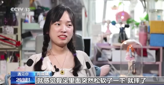 向晨曦:经常就莫名其妙地摔跤,就感觉骨头里面突然松软了一下,就摔了,然后摔久了摔得鼻青脸肿的,父母觉得不正常了,就带我去看病。去无锡,去上海,去了好几家医院,最后确诊说可能是肌营养不良,没有办法治。