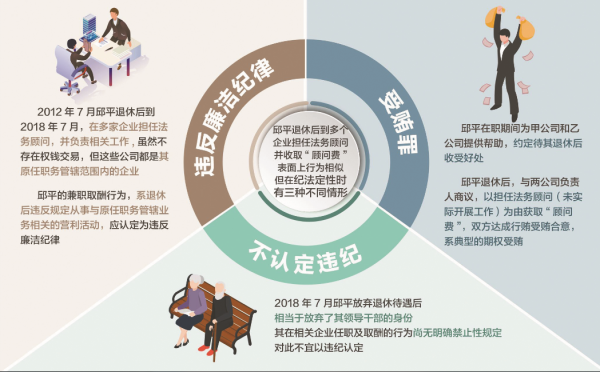 邱平在相关企业领取“顾问费”,为何定性存在违纪、犯罪和不宜认定违纪三种情形?
