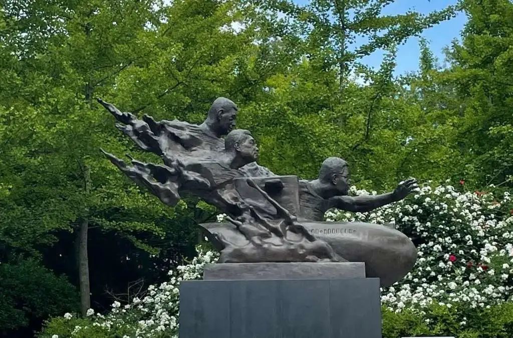 黄群、宋月才、姜开斌英雄雕像。资料图
