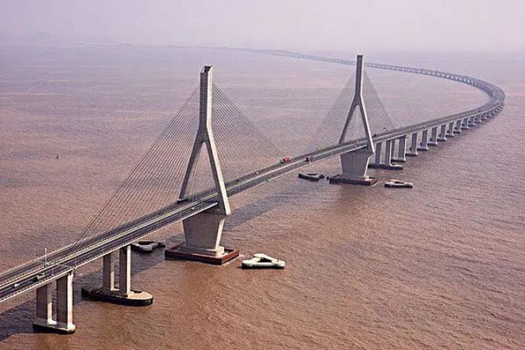 青岛双瑞承担的东海大桥防腐工程荣获国家科学技术进步一等奖和国家优质工程金质奖。资料图