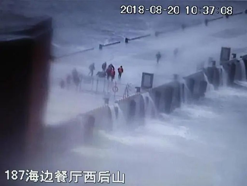 300米长的码头,一个巨浪袭来,几名同志倒下了;浪头过去,他们又站起来,继续奋力向前冲……