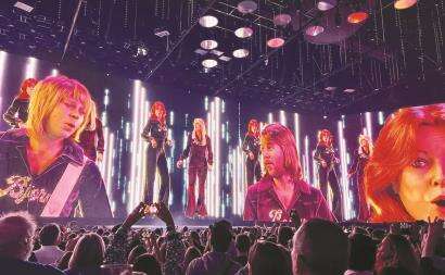 《Dancing Queen》《Mama Mia》《Gimme Gimme Gimme》……一首首耳熟能详的经典歌曲激起了甜美回忆的涟漪,亦扇动着舞台技术革新的风暴。伦敦演唱会舞台上,ABBA成员的巨型特写影像俯瞰着观众,充满未来感的视觉效果让人恐惧又痴迷。极度逼真的裸眼3D效果模糊了虚拟与现实世界的边界,由数字技术合成的虚拟人物“ABBA-tars”不仅还原了歌者年轻时的身形样貌,更把表演动作和神情展现得惟妙惟肖。“打开怀旧的时间胶囊,跳出未来主义的奇观。”有网友如此评价。