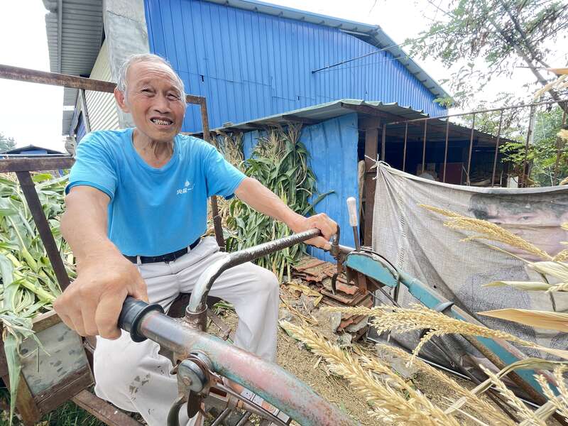 79岁王金学驾驶手扶拖拉机,每天带着老伴去捡拾秸秆搞养殖。摄影:朱江