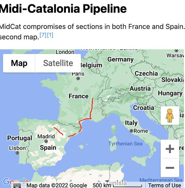 Midcat天然气管道示意图 (来源:谷歌地图)
