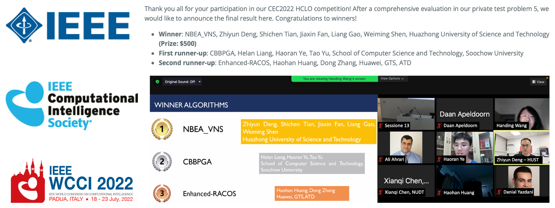 获2022IEEE进化计算大会竞赛冠军