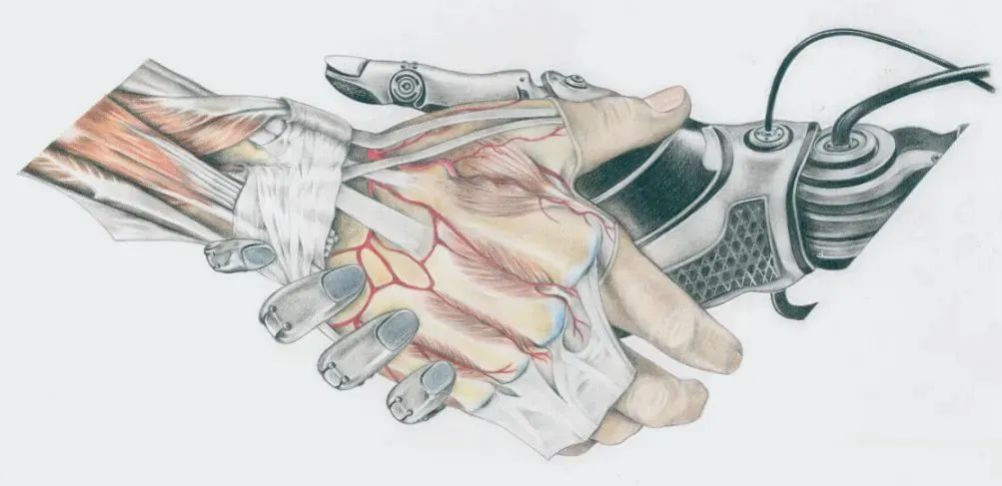 作品简介:作品由彩铅完成。画面展现了人类与人工智能携手。寓意科技为人类带来便利,人类为科技指引方向。当医疗和科技结合: 电子显微镜、序列分析、质谱技术的应用使医学研究的深度有了质的飞跃;当医学与人工智能融合:智能传感器、云计算、人机共融的智能制造模式等在临床实践中崭露头角;当我们与科技合作,让处于人类社会大发展、大变革、大调整时期,处在一个挑战层出不穷、风险日益增多的时代,贡献出中国方案、中国力量和中国智慧。