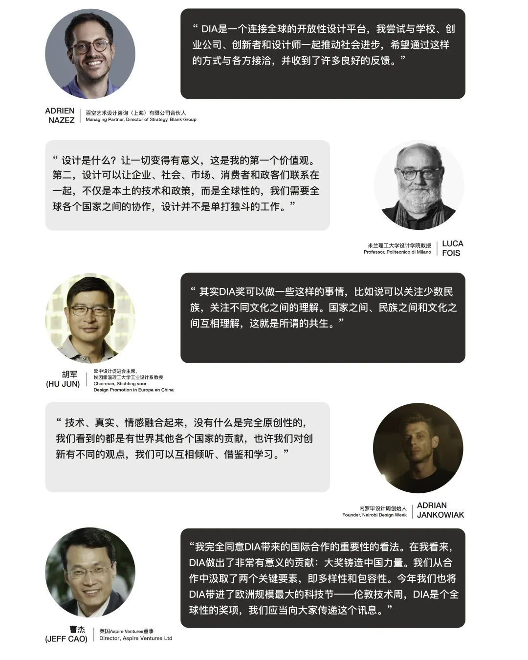 宋建明教授表示,DIA大奖这张智力名片含金量越来越高,磁性和磁力越来越强。融合创新、智力发展,面对新一轮的全球数字化变革的挑战,探讨解决共享社会的难题的新方法、新模式变得当务之急,它将继续推动中国与发达国家阵营,乃至全球工业设计界及智能创新技术的融合,建构共生共识,以协同之力创造新诉求、新可能和新价值。