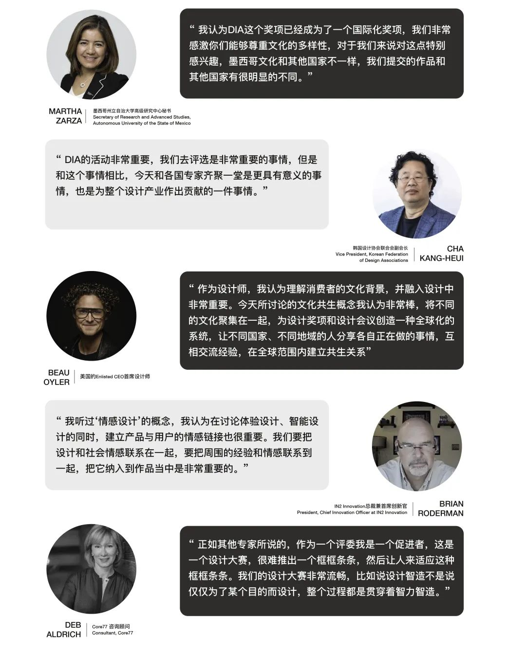 伴随着地缘文化的不同,越来越多新颖前沿的设计作品在DIA涌现。本次会议围绕“设计协同”这一主题,充分发挥“DIA设计联合国”的优势,通过跨文化视野与多行业观察,探讨不同国家、不同文化背景下所呈现的设计行业发展趋势及其背后的成因与机理,探讨跨文化设计价值交融与共生。同时会议也对初步评审结果进行汇总和统一商榷,并由各个赛区评委分享重点推荐作品,确定总决赛入围名单。