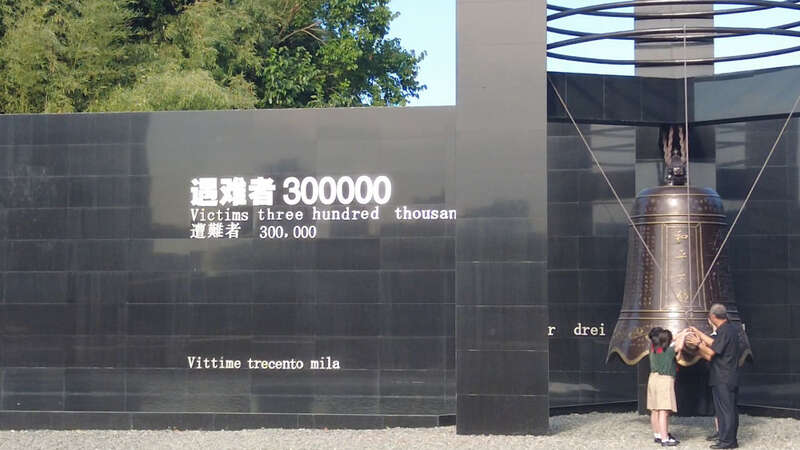8月15日8时15分,撞响和平大钟仪式在侵华日军南京大屠杀遇难同胞纪念馆公祭广场举行。6名南京大屠杀幸存者后代和南京市青少年代表,共同撞响和平大钟。新华社记者刘宇轩 摄