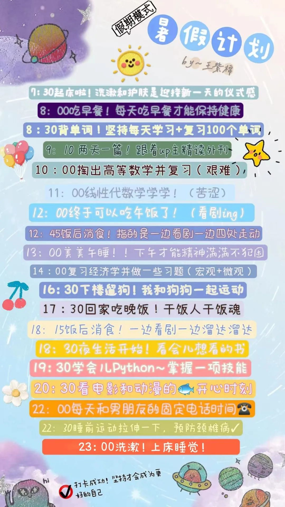 “最漫长的暑假,也希望变成最充实的暑假!希望自己可以自律赚钱两不误!”